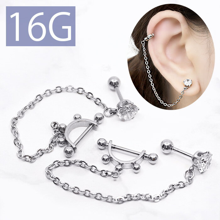 ボディピアス 16G チャーム 軟骨ピアス サージカルステンレス 金属アレルギー対応 ジュエル チェーン シールドピアス 2連 スタイリッシュ キラキラ 揺れる かわいい かっこいい メンズ セカンドピアス ボディーピアス 片耳用 軟骨 ピアス