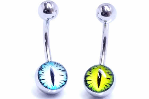 蛇の目をモチーフにした不気味なボールをセットしたバナナバーベル型のボディピアス。