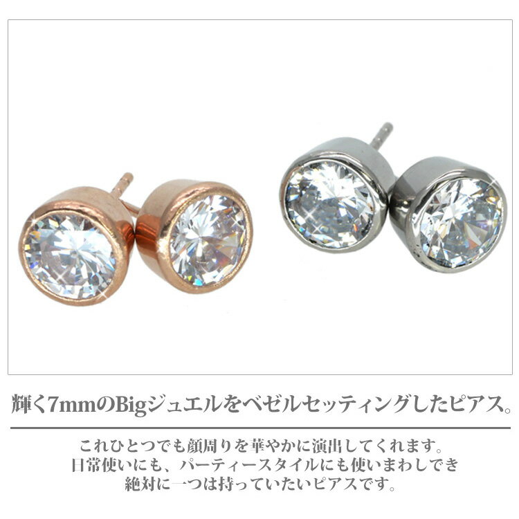 Spec 品番 sces484 材質 サージカルステンレス(医療用ステンレス)、キュービックジルコニア サイズ ベゼルジュエル:直径7mm 備考 ピアス2個セット